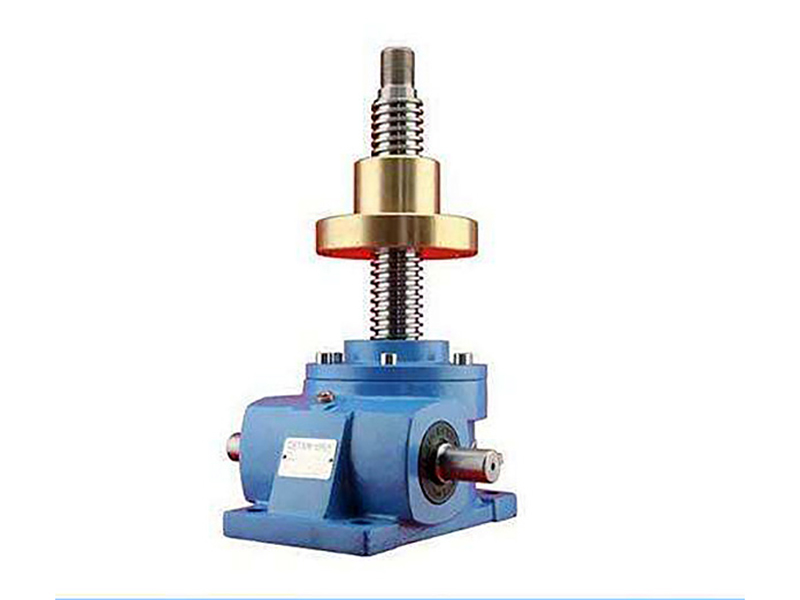 电机或者手动驱动蜗杆旋转,蜗杆驱动蜗轮减速旋转,蜗轮内腔加工为内螺纹,驱动丝杠上下移动,由于内部有蜗轮蜗杆,丝杠的减速作用,达到放大推力的作用。